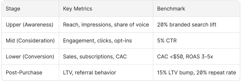 Metrics by funnel stage: